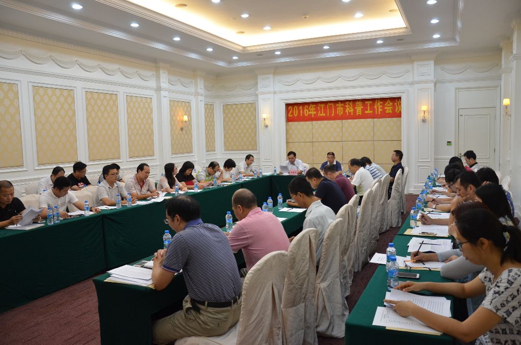 9月21日,江门市科协为贯彻落实江门市全民科学素质工作会议精神,统一思想、凝聚共识,努力推动江门市科普事业迈上新台阶,于当日下午在台山市召开江门市2016年科普工作会议。市政协副主席、市科协主席吴森出席会议作了讲话,市科协党组书记、副主席邹敦华传达学习江门市全民科学素质工作会议精神,市科协副主席张兴主持会议。各市、区科协专职副主席和科普部负责人,各市级科普示范镇(街)分管领导和负责人,市级以上的科普教育基地负责人,市科协机关工作人员等50多人参加会议。