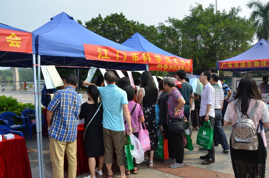 9月21日,江门市科协为贯彻落实《江门市全民科学素质行动计划纲要实施方案(2016-2020)》,按照《中国科协、教育部、科技部、中科院关于举办2016年全国科普日活动的通知》的要求,于当日上午联合市农业局、台山市相关部门在台山市石化广场举办江门市2016年纪念“全国科普日”暨科技文化卫生“三下乡”科普集市活动。本次活动组织了21家市级学会、协会和市直有关单位的100多名科技工作者和科普志愿者,为当地3000多人次的市民群众开展科技服务。江门市科协党组书记、副主席邹敦华,江门市科协副主席张兴,江门市农业局总农艺师黄家河等领导参加现场活动。