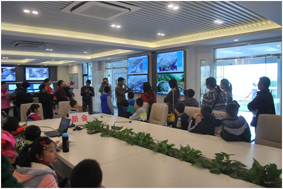 在活动现场上,区青少年宫和区气象局科普志愿者们指引青少年和家长们参观了区气象台的突发事件预警信息发布中心、气象预报会商室、远程会议室、气象观察场点等功能场所。特别是在会议室,大家观看了有关气象知识的视频,认真聆听工作人员介绍如今气象观测的自动化水平,卫星云图的形成过程及天气预报过程。通过介绍气象要素的采集传输、处理计算,使青少年们了解了天气预报的制作流程以及如何通过现代通讯工具快速灵活地获取最新的气象预报信息。