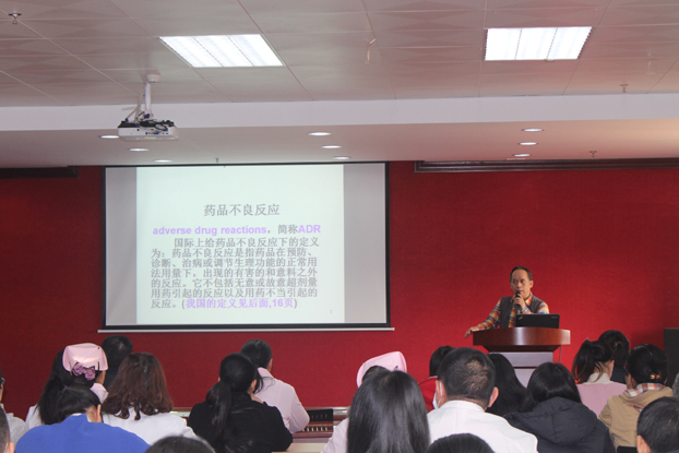 在服务期间,首先由会员专家谭瑞威主任药师(市药检所)为卫生院30多名医护人员讲授“药品不良反应及合理用药专业课程”的讲座。随后由会员专家冯志平主管药师(市中心医院)深入药房指导合理使用抗菌素技术管理工作。专家们对西药与中药材的贮存与管理方法详细传授,并进行药房相关制度、湿度温度记录、药品进存用记录等布局提出指导意见。