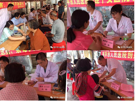4月28日,获悉恩平市科协为进一步落实广东省文化科技卫生“三下乡”活动暨“千会服务千村”行动,提升基层医疗服务水平,改善乡村缺医少药的问题,于4月25日上午联合市卫计局组织市医学会所属医疗单位的医务人员组成医疗小分队,首站来到君堂镇新君村委会广场,为当地300多名群众义诊咨询,送医赠药,收到良好效果,受到当地群众好评。