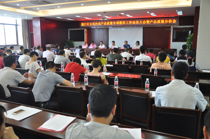 江门市质量检验协会为加大对荷塘镇内衣行业的质量整顿工作,贯彻落实提高企业管理人员的质量意识,促进产品质量不断提升,于5月19日接受政府部门的委托,在荷塘镇政府会议室举办企业内衣产品标准质量分析报告会。会议邀请了广州纤维产品检测研究院专家作专题报告。市质监局和蓬江区分管领导出席了会议,来自蓬江区职能部门、技术机构、协会企业等代表100多人参加了会议。