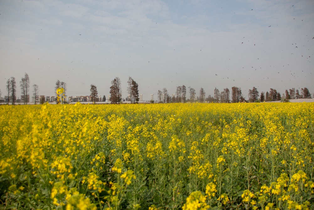 据悉,目前油菜花长势喜人,形成一片片美丽的花海,吸引不少游人驻足观赏。
