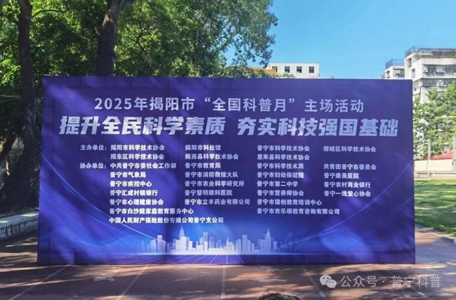 为深入贯彻落实习近平总书记关于科技创新、科学普及和科学素质建设的重要论述,深入实施全民科学素质行动,大力弘扬科学精神和科学家精神,推动科学普及与科技创新密切协同,助力科技强国建设。9月13日上午,揭阳市科协、揭阳市科技馆、普宁市科协、榕城区科协、揭东区科协、揭西县科协、惠来县科协联合在市举办2025年揭阳市“全国科普月”主场活动。