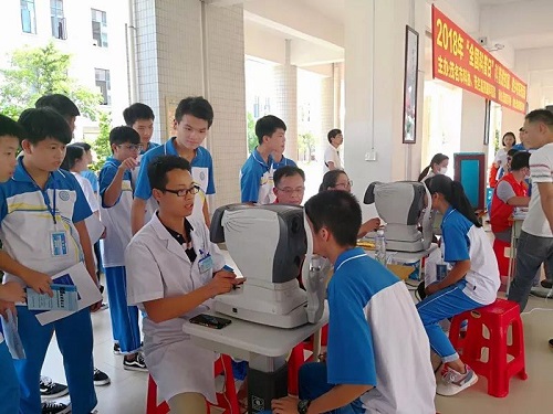 茂名晶亮眼科医院组织了专业医生和护士为学生们筛查检测视力,用专业仪器为他们进行眼底检查,讲解如何预防近视、预防眼科疾病的知识,教导他们养成良好的用眼习惯,保护好眼睛。茂南区疾病控制中心也组织医务人员参加了义诊服务活动。