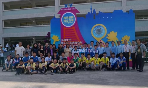 参加乐博士杯第六届广东省青少年科技实践能力挑战赛的茂名市代表队选手们合影留念