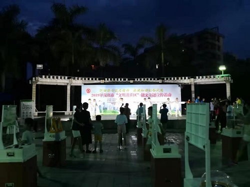8月22日晚上,茂名市创文办、茂名市科协等13个单位联合在茂南区站前街道双山南社区举办2019年茂名市“文明进社区”创文主题宣传活动,活动内容丰富多彩,受到社区群众的热烈欢迎。