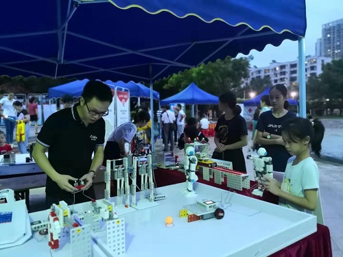 本次活动以“文明进社区”为主题,组织创文“宣传+文化+科普”志愿服务进社区。当晚,各参与单位组织了创文展板、科普展品展示以及机器人体验等活动,开展创建好心平安茂名宣传、消防安全教育、社区义诊、急救心肺复苏术演示、亲子拓展游戏等便民志愿服务宣传,深受社区群众喜欢。在舞台上,社区群众自编自演柔力球、舞蹈、腰鼓、萨克斯合奏等表演,博得一阵阵掌声。茂名市消防支队官兵向社区群众展示消防器材,普及消防安全知识,进一步增强群众的消防意识。茂名市科协展示12件科普展品,科普性和趣味性十足,社区群众纷纷驻足观看和体验。亲子拓展游戏吸引众多的小朋友和家长们一起参与,其乐融融。医务人员给社区群众带来眼健康义诊,检测视力进行白内障筛查。现场工作人员还向市民群众群众派发创文宣传环保袋、宣传折页等,开展创建平安茂名宣传。