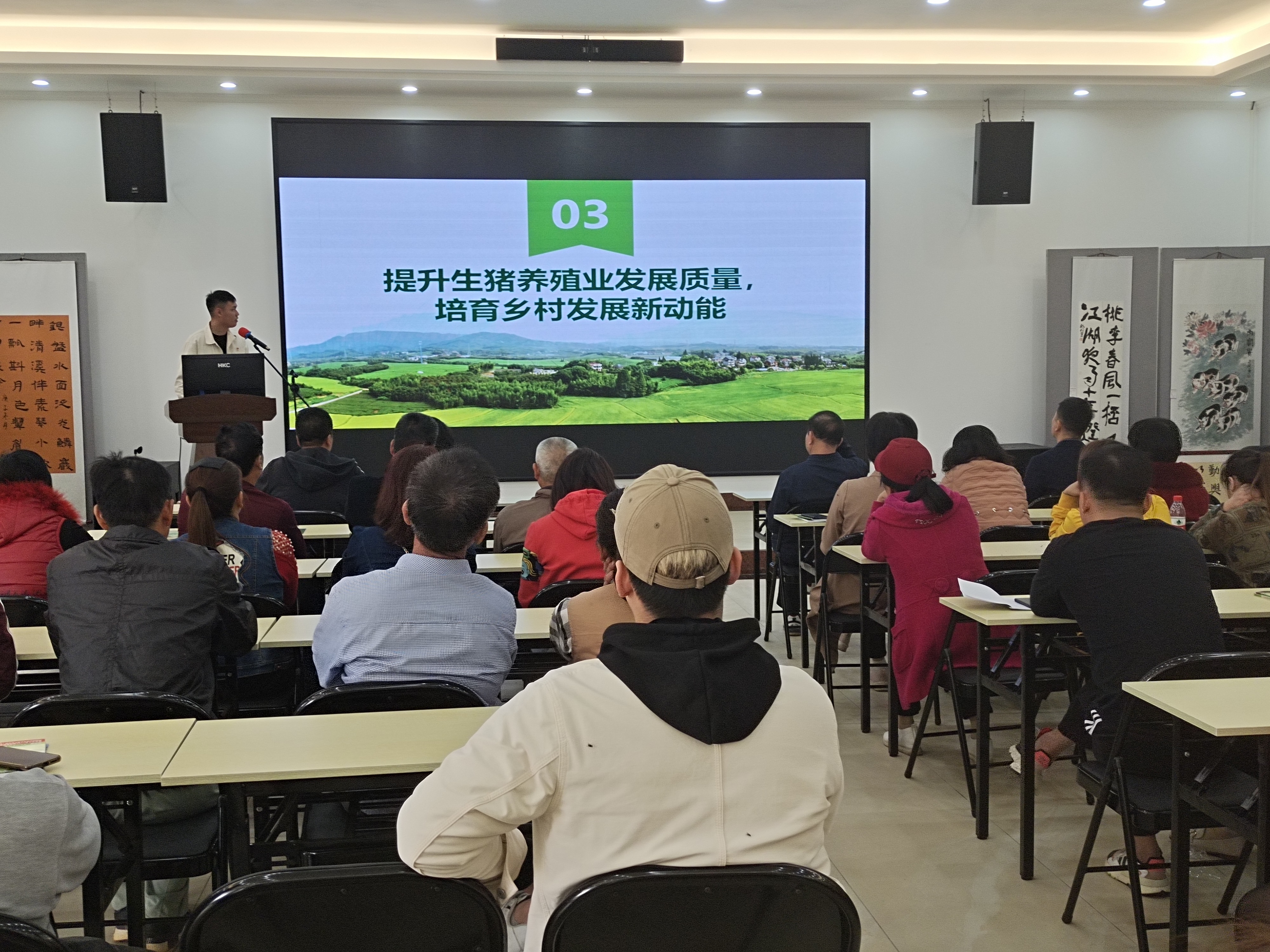 茂名冠美农业科技公司生猪养殖专家蔡霖晖给农户授课