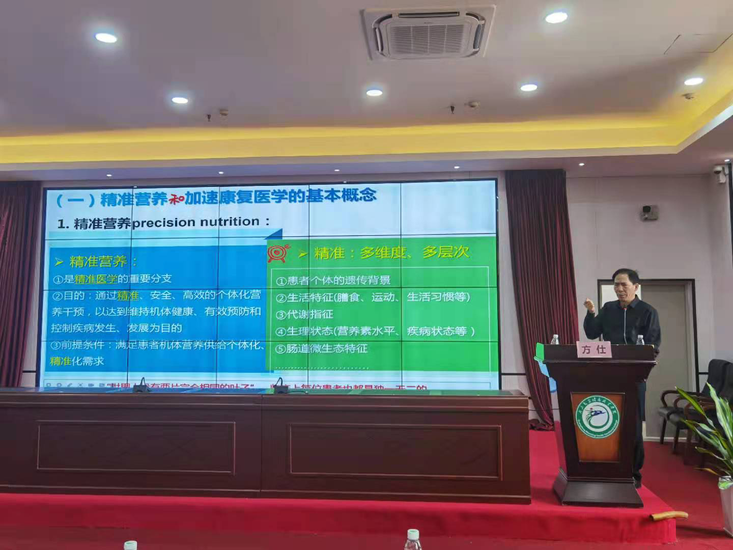 广东省临床营养质量控制中心主任方仕教授作了《精准营养助力加速康复医学》专题讲座,讲授了多学科合作(MDT)之精准营养和加速康复医学、解决核心问题,精准营养助力加速康复医学,并在交流咨询环节耐心答疑,传授营养医学专业技术。本次讲座,学员们对公共营养科学有了进一步的认识,对做好营养医学、营养科学坚定了信心。