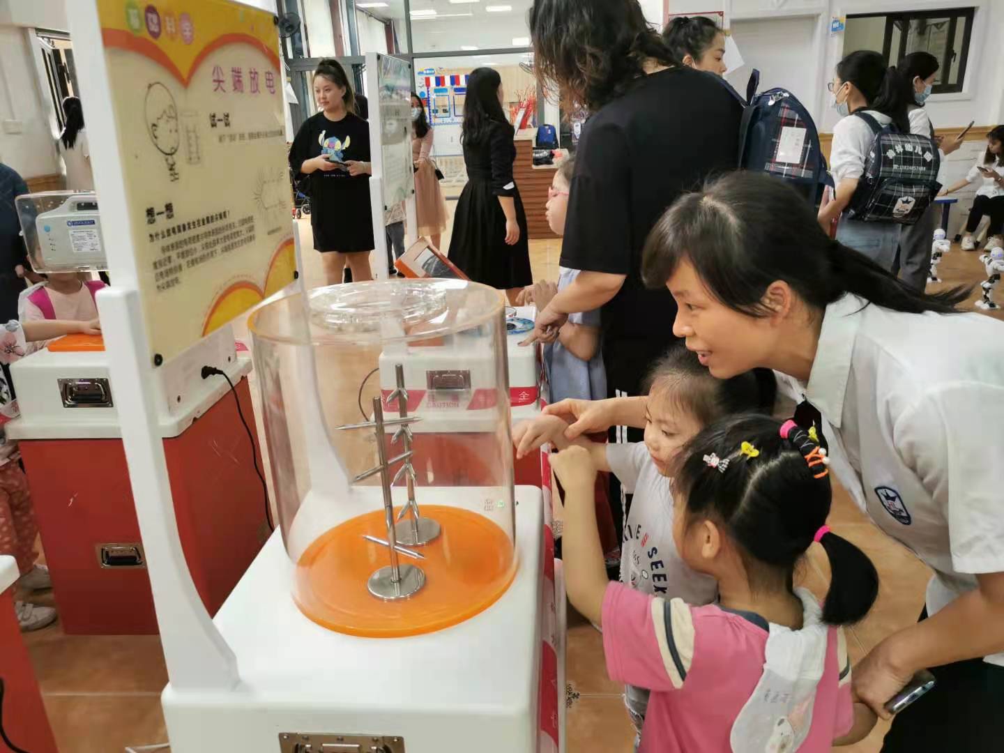在科普展品体验活动中,结合体验党史教育、社会主义核心价值观、茂名市文明公约等内容,将科学教育与思想道德教育相结合,通过科普进校园活动,孩子们在趣味中观看、体验、近距离触摸到科技,切身感受到科学的魅力。