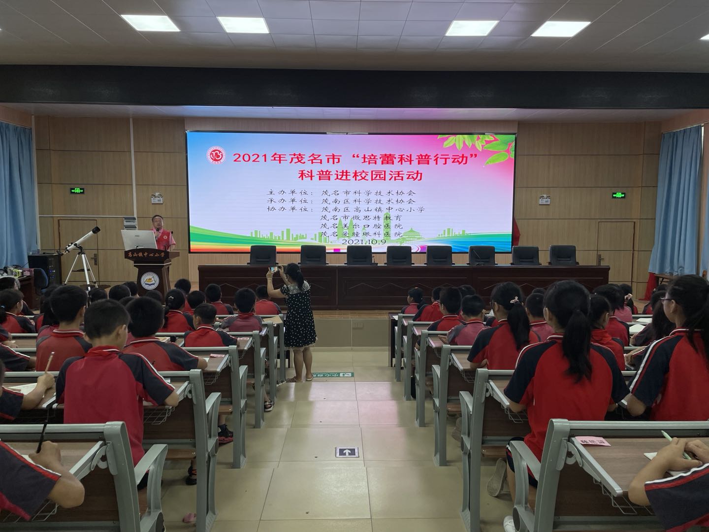 10月9日,茂名市科协联合茂南区科协茂名市微思特教育、茂名市美尔口腔医院和茂名爱瞳眼科医院等单位,组织科普工作者和科普志愿者走进茂南区高山镇中心小学,开展2021年“培蕾科普行动”科普进校园活动。