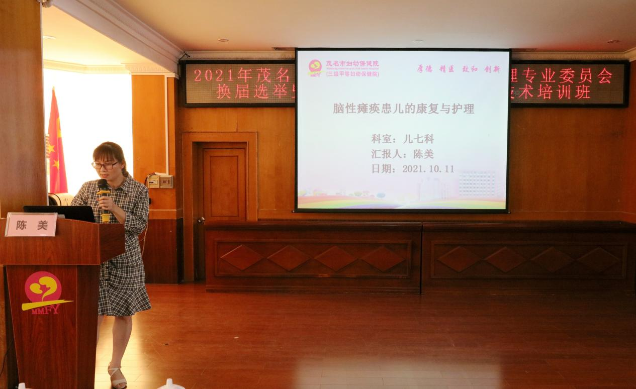 茂名市妇幼保健院儿童康复专科护士陈美讲授《脑瘫患儿的康复与护理》,结合案例分享脑性瘫痪患儿的临床表现、评估、康复治疗方法、康复护理新技术等,对脑瘫患儿的康复有很好的指导作用,同时结合本院的案例分享,展示了茂名市妇幼保健院脑瘫患儿的良好康复情况。