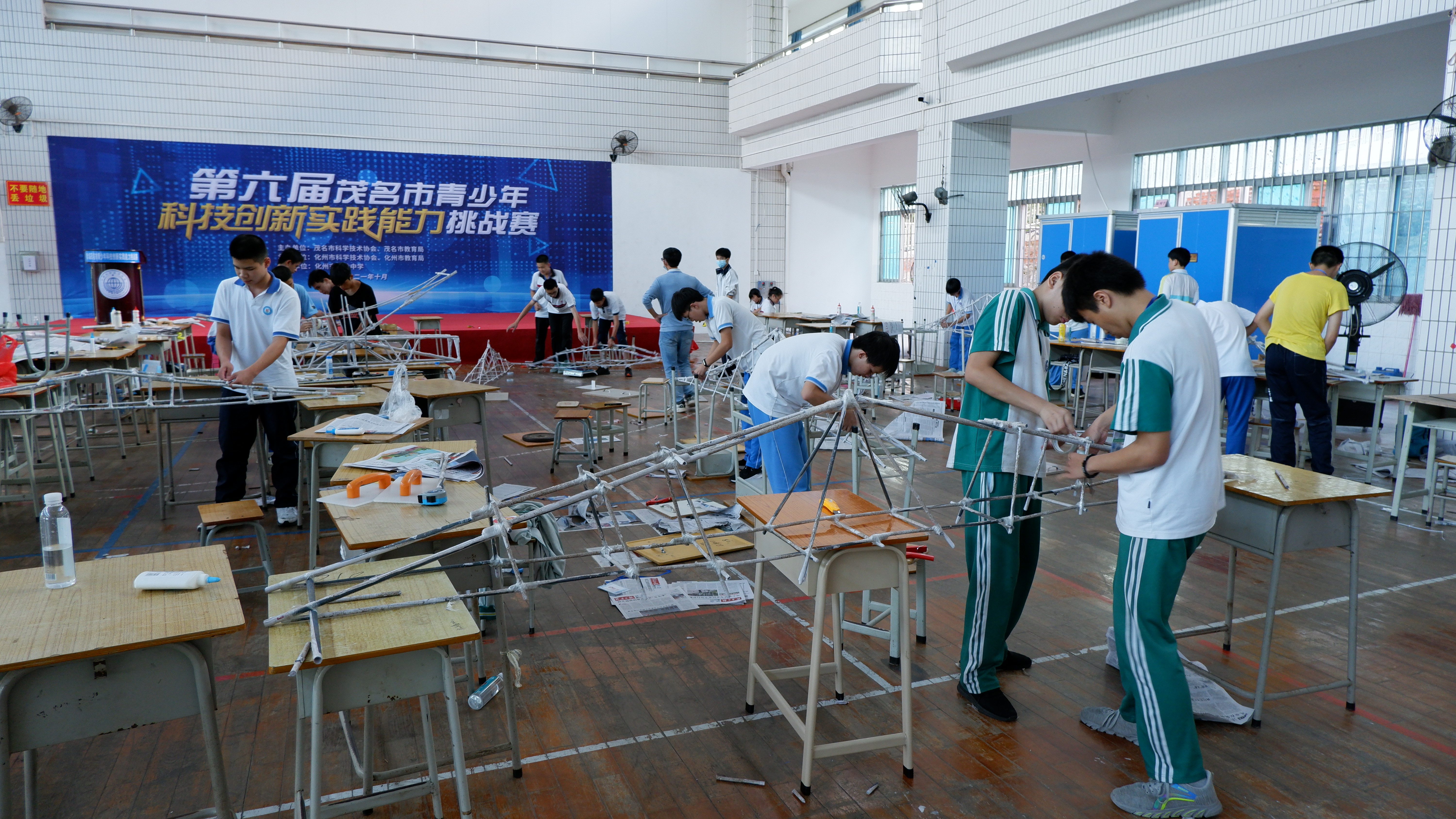本次挑战赛以“挑战极限 纸论英雄”为主题,分设小学组“纸的力量——桥梁结构承重”,初中组“纸的力量——模型跨度”,高中组“纸的力量——模型跨度”,要求参赛学生团队现场利用废旧报纸制作纸质模型,以模型自身重量与承重比计比赛成绩。参赛学生在赛场上和队友团结协作,奇思妙想,挑战极限,充分展现了良好的竞技状态和精神面貌,赛出了风采,赛出成绩。在比赛期间,还举办了2021年茂名市青少年科技辅导员培训班,邀请专家作题为《科技创新大赛项目分析和辅导方法》专题辅导,200多名科技教师参加了培训,进一步了解科技创新大赛项目类别,找准辅导学生的方式和方法。