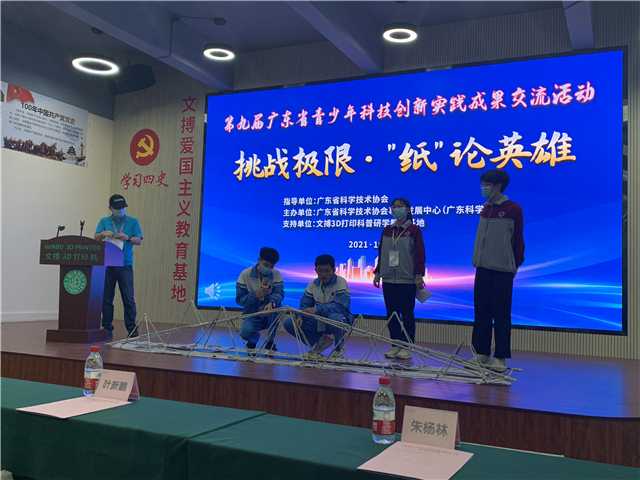 10月29日至30日,第九届广东省青少年科技创新实践成果交流活动在文搏3D打印科普研学教育基地顺利举办。全省13个地市166支队伍500多名师生齐聚一堂,以废旧报纸挑战极限。茂名市组织高中、初中、小学组别共17支队34人参加竞赛。经过两天激烈的角逐,茂名市代表队取得了省一等奖9项、省二等奖1项、省三等奖7项的优异成绩。