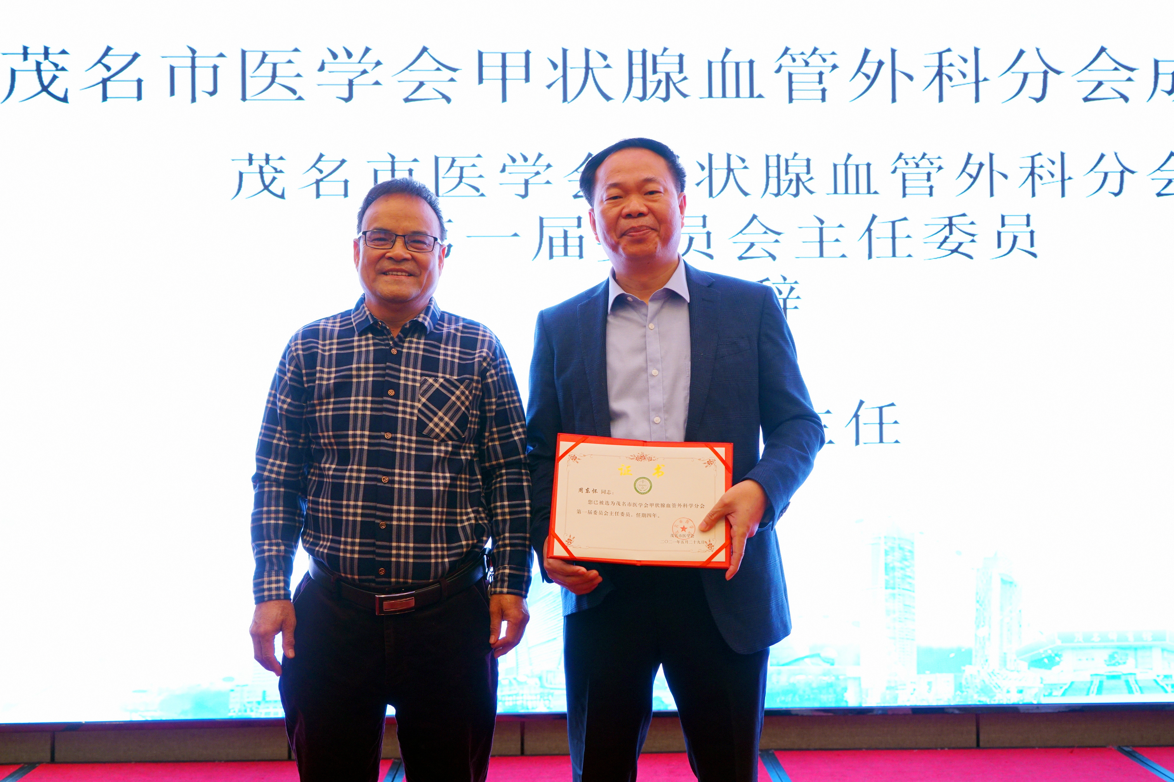 甲状腺和外周血管疾病是茂名市一个常见多发病,甲状腺血管外科学分会的成立,对促进甲状腺血管外科学发展,提高基层医疗水平发挥重要作用。