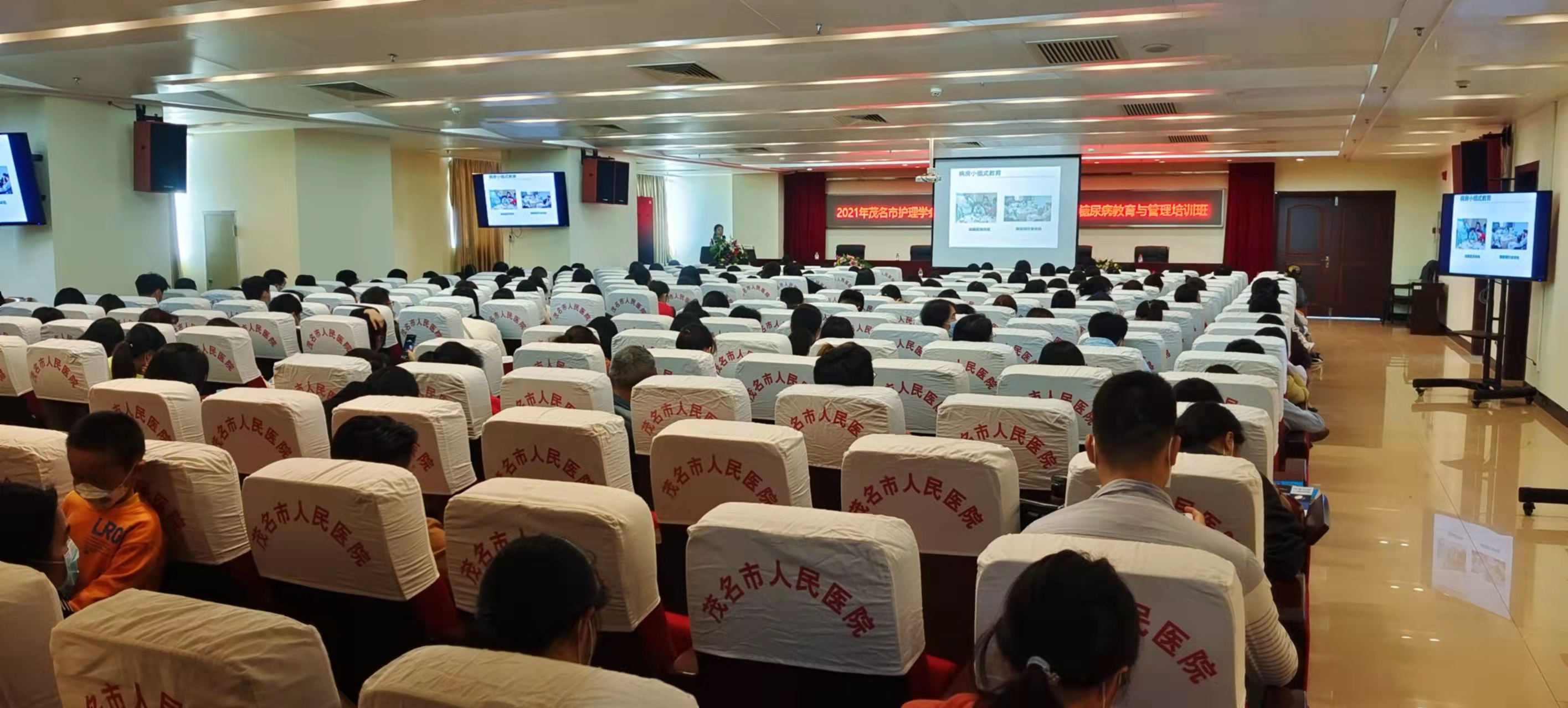 11月13月,由茂名市护理学会糖尿病护理专业委员会举办的2021年茂名市护理学会糖尿病专业委员会年会暨糖尿病教育与管理培训班在茂名市人民医院召开。此次培训班邀请了中山大学附属第三医院护士长胡细玲及茂名市糖尿病领域专家莅临授课,以“教育、管理”为主题,采用了理论授课、现场问答、临床护理查房等方式介绍了糖尿病护理教育与管理的新热点、新业务、新知识等,为全市护士搭建了学术交流平台。茂名市200多名护理同仁参加,共享学术盛宴。