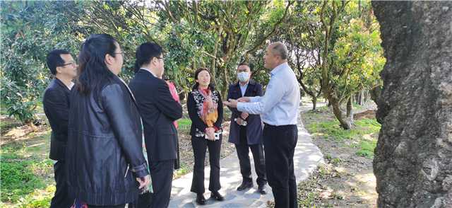 调研组在茂南区禄段贡园调研考察荔枝产业品牌建设情况