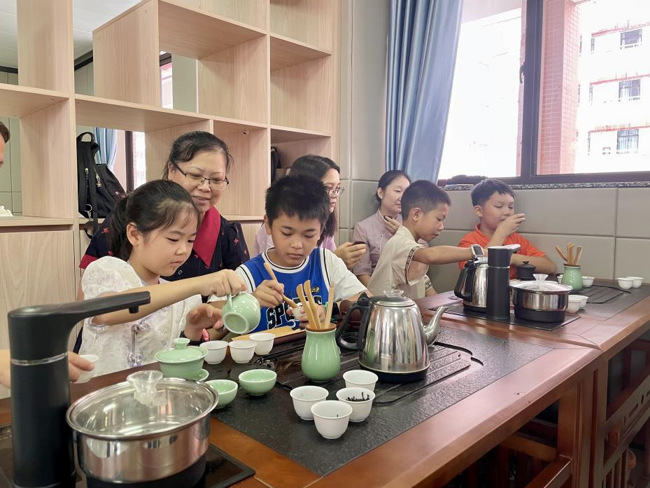 小朋友练习茶艺