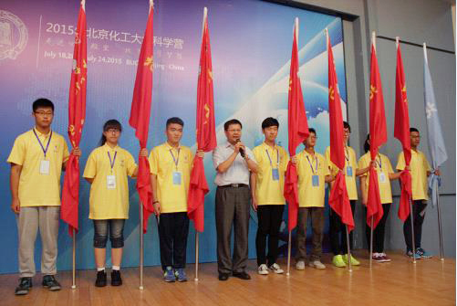 北京化工大学院长谭天伟院士为各班级授旗并宣布开营