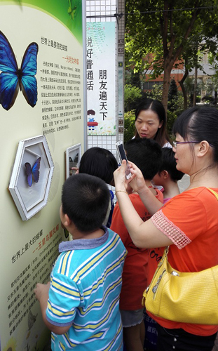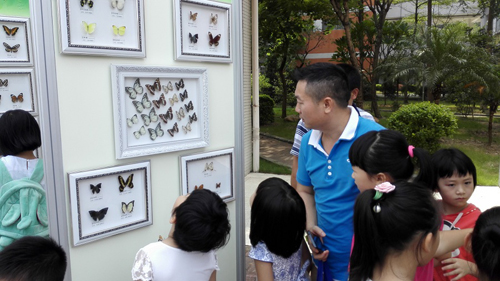 此次活动以“万众创新 拥抱智慧生活”为主题,包括科普展览、现场咨询、展品游戏、航模表演等多项科普活动。佛山市林科所展出了馆藏的几百种蝴蝶标本,吸引了广大家长和学生的目光,纷纷对五彩斑驳、千奇百怪的蝴蝶啧啧称奇,同时也向佛山市林科所科普工作人员提出了一些有趣的问题。在佛山市林科所科普工作人员的耐心解释和讲解下,小朋友们认识了世界上“最美丽的蝴蝶”、“最大的蝴蝶”,也了解了蝶翅画的基本制作工艺。
