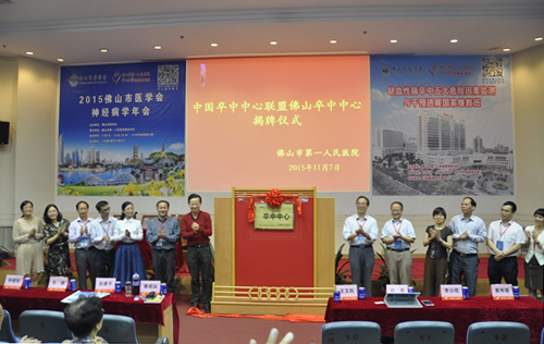 参会的领导和专家们共同为中国卒中中心联盟佛山卒中中心揭牌