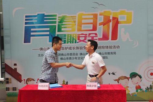 活动首先由佛山市地震局副局长邱熙和佛山市青少年文化宫副主任罗晓鸣分别代表市地震局和市青少宫签订了《共建佛山市青少年防震避险教育基地的协议》。随后由佛山市地震局工作人员和广东蓝天救援队为50个亲子家庭讲解防震知识、应急救护技能等,让青少年掌握应急避震的正确方法,熟悉紧急疏散的程序、方式、路线和安全避险区域,使青少年们学会紧急救护的基本技能,更懂得珍惜生命。