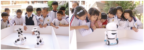 佛山科学馆除了带去玩转思维益智展品外,还首次展出2款新型机器人。其中的“萝卜”机器人不但可以与观众进行语音交流,而且还能跳舞和讲故事等。另外一款则是今年猴年春晚爆红的智能机器人阿尔法。阿尔法机器人为观众们带来妙趣横生的表演,还会做出不同的高难度动作,让现场欢乐笑声不断,大家都看得激动不已。这次展示让同学们近距离接触到了机器人,更让他们了解科技,喜欢科技,主动探索,并在探索过程中发现科学的奥秘。
