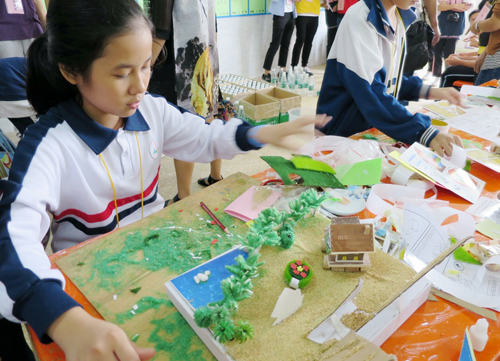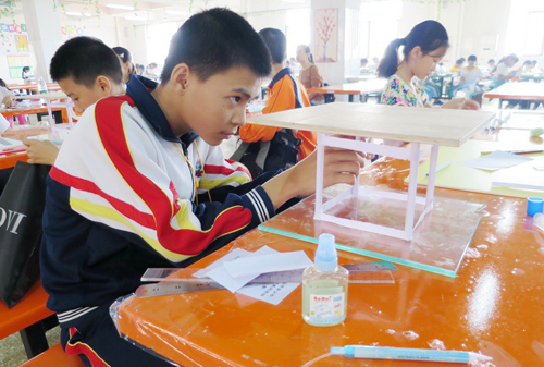 两张普通A4不超过12克组装成的纸结构能承受20公斤、30公斤、还是40公斤的重量呢?最终12克的A4纸结构能承受超过40公斤的载重量。各参赛选手要在规定的3小时比赛时间里,完成现场制作,每一个零件都要现场完成,其难度相当大。本次竞赛的中小学参赛学生没有丝毫的畏难情绪,每一位选手都积极动脑,专注、细致、熟练地操作,经过3个小时的“建筑”,零散的材料逐渐在选手手中变身为绿茵茵的草地、精致的凉亭、各式各样的湖泊、蜿蜒曲折的小桥,一座座错落有致的庭院,引人入胜。