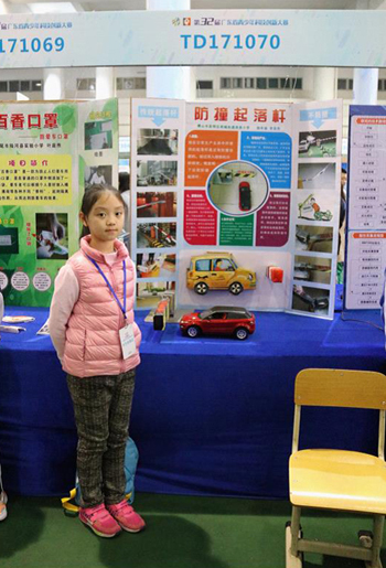 佛山市参赛选手李思彤及参赛作品《防撞起落杆》,该作品获得省赛一等奖并将参加全国赛