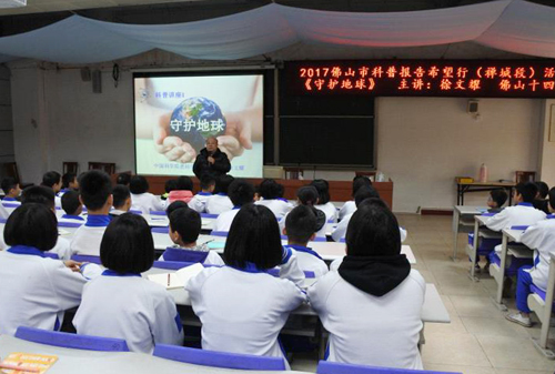 徐文耀教授做《守护地球》科普报告(佛山市第十四中学 供图)