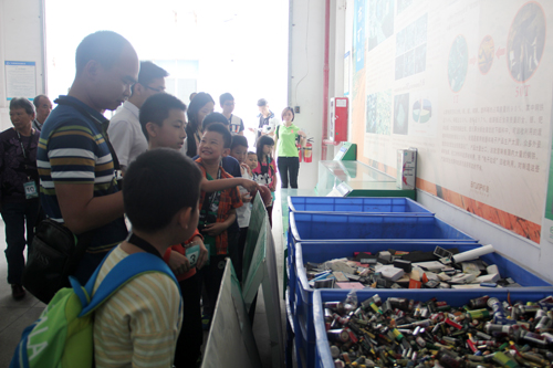 在邦普科普教育基地讲解员的带领下,小朋友、家长及老师们前后参观了邦普公益回收展示厅、新能源车用动力电池循环利用技术研究室、研发实验室和循环科技展示馆,并于参观结束后在会议厅播放了邦普环保公益宣传片,与亲子团进行了交流与探讨。