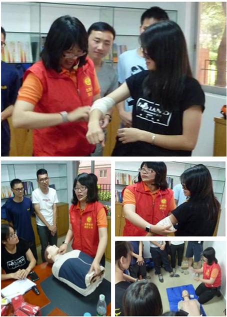 当天下午,佛山市防灾减灾协会在市地震局党建室进行防震减灾应急救护培训。培训以“应急救护基本技能”为主题,以汶川大地震、唐山大地震等案例授课的形式强调了提升安全意识的重要性,并通过现场多种实操,例如:环形包扎、螺旋包扎、螺旋反折包扎、“8”字包扎、心肺复苏等,学习应急救护基本技能。