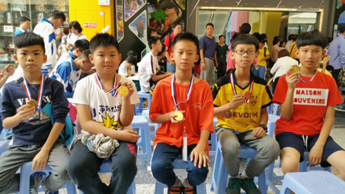 佛山市获得一等奖的两支队伍佛山市南海区大沥镇盐步初级中学和佛山市南海区大沥镇平地小学赛后合影