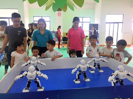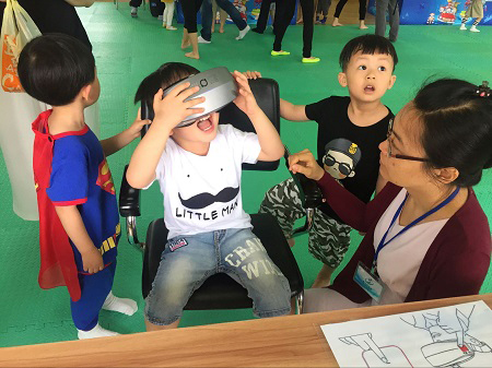 此次开放日主题是“小创客 大智慧 我与机器人探索科学世界”,佛山科学馆展出了智能表演机器人阿尔法1S和数台新款VR(虚拟现实)一体机,深受小朋友欢迎。在展品摊位上,小朋友们都玩得不亦乐乎,现场气氛非常活跃。