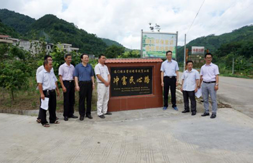 随后,黄文主席一行来到实地视察“玉堂村珍珠番石榴一号基地”和新完成的扶贫项目:冲富民心路,高度赞扬了扶贫工作组结合村情民情精心打造并真正使村民受惠的扶贫工程。黄文主席表示,在精准扶贫中,驻村工作组充分发挥创思维,围绕“玉堂番石榴”产业,一手抓电商促销售,一手抓合作社提质量,非常有特色,非常有成效。同时积极推进基础设施建设,加强村道硬底化建设,着力解决村民出行难问题,真正惠及群众。此外,迅速响应社会主义新农村示范村建设,选准项目,加强规划。总体而言,扶贫工作开展扎实,扶贫项目立竿见影,规划科学,贴近实际。接下来,希望驻村帮扶干部再接再厉,不断整合资源,特别是充分调动贫困村民劳动致富的积极性,发扬勤劳创业精神,确保全村早日脱贫。