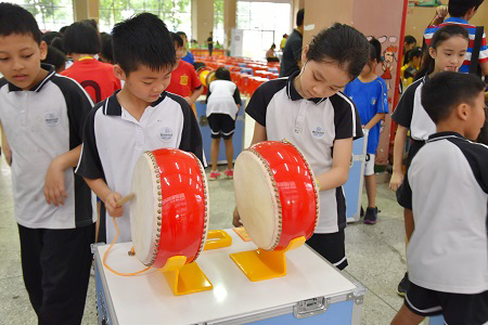 上午9:30,活动正式开始,佛山市东平小学千余名师生分别参观体验了科学表演秀、移动球幕、航模表演、机器人表演、气象播报、纸飞机比赛等,佛山科学馆带去的20件微型移动展项也大受欢迎。现场项目丰富多彩,同学们热情高涨,纷纷投入到科学知识的欢乐海洋中。