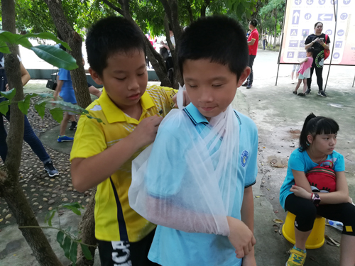 本次活动紧扣“三生教育”主题,即生命教育、生存教育和生活教育。在教官的指引下,家长和孩子分别体验了地震、火灾和溺水,以及校巴事故等等情况发生时,如何进行自救的正确方式。不少家长惊奇地表示,类似的内容,以往都是在电视中看到,亲身体现还是第一次。意大利教育学家蒙台梭利说过:“实践是孩子最好的老师。”当意外发生时,时间无疑就是生命,分秒必争,演练的重要不言而喻。如校巴发生火灾时,该如何有序地进行疏散,逃离危险现场,仅仅经过数次演练,30余名同学就可以将时间控制在30秒左右,而且能快速有序地进行疏散。