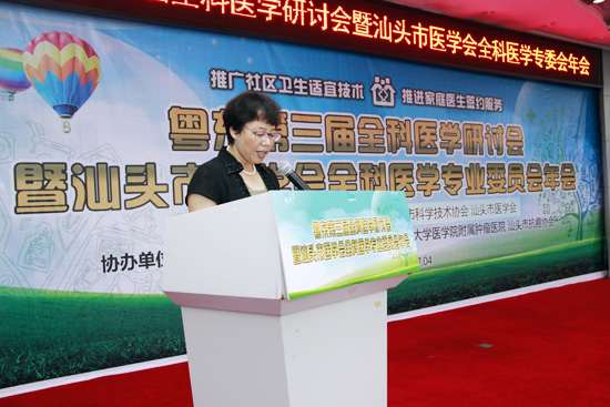 7月4日,由汕头大学医学院及附属肿瘤医院、汕头市科学技术协会及汕头市医学会联合举办的粤东第三届全科医学研讨会暨汕头市医学会全科医学专业委员会年会在汕头科技馆圆满举行。大会主席、汕头大学医学院执行院长边军辉教授致欢迎辞,汕头市卫计局郑衍平局长、汕头市科学技术协会洪建芬主席出席开幕式并致辞。汕头市医学会全科医学专业委员会主任委员、汕大医学院肿瘤医院副院长邱卫黎主任医师主持了开幕式。