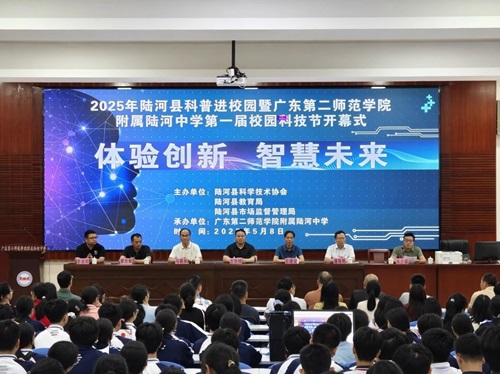 5月8日,以“体验创新,智慧未来”为主题的2025年汕尾市陆河县科普进校园暨广东第二师范学院附属陆河中学第一届校园科技节开幕式在学术报告厅举行。本届科技节由陆河县科协、陆河县教育局和陆河县市场监督管理局主办,由广东第二师范学院附属陆河中学承办。