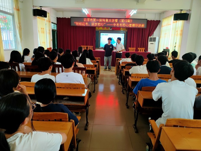 云浮市第一届科普大讲堂(第12期)——“轻松迎考 逐梦前行”中考考前心理辅导讲座举办
