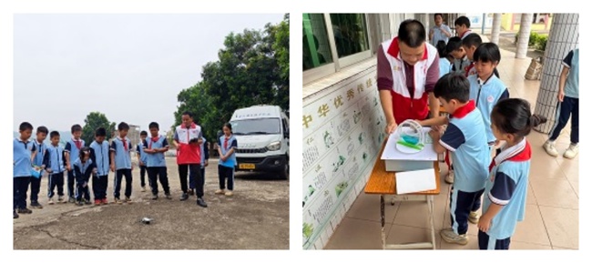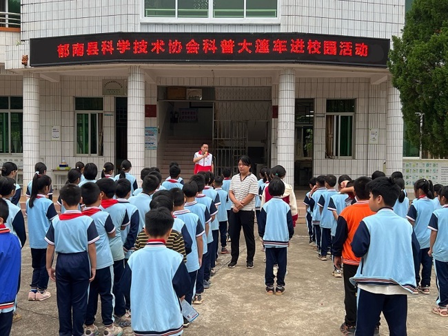 科学家精神展板前,师生们驻足凝视。科学家精神宣传展板系统展示了袁隆平深耕稻田、南仁东建造“中国天眼”等事迹,搭配郁南本地科技工作者研发无核黄皮种植技术的故事,科普辅导员结合展品讲解道:“从实验室到田野,科学家精神始终是创新的底色。”现场还发放了《公民科学素质200问》读本,供学生深入学习。