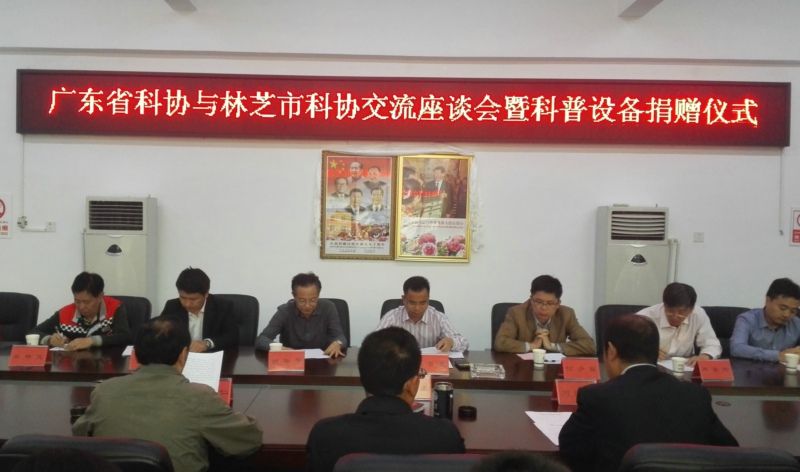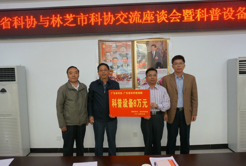12日,冯日光同志带领科技服务团与林芝市科技局(科协)进行了座谈。会上,中科院广州能源研究所郭华芳教授谈到,林芝生物质能原材料禀赋非常好且十分丰富,中科院广州能源研究所与西藏欧林生物质能有限公司等生物质能企业合作具有广阔的领域,表示希望在生物质能、生活垃圾综合应用等方面加强合作。广东科学馆何少强馆长建议,加快林芝科技场馆建设、申报中学科技场馆建设和移动科技馆巡展、开展科普大篷车巡展,并表示欢迎林芝市科协到广东科学馆考察交流;会上,广东科学馆向林芝市科协捐赠了价值8万元的科普设备。省微生物研究所李泰辉教授谈到,林芝地区资源十分丰富,对特色菌类进行栽培前景广阔、意义重大,并表示省微生物研究所只要有相关研究项目,必定首选林芝,深度合作。省干细胞与再生医学协会副秘书长石现谈到,在干细胞与再生方面希望与林芝有更多的结合点,开展合作共赢;并转达了省干细胞与再生医学协会陈海佳会长的意愿:“将一如既往关心和支持林芝的科技、教育发展。”省干细胞与再生医学协会除了2012年、2014年共出资27万元捐建学校医务室外,今年还捐赠了5万元作为援藏工作科研经费。