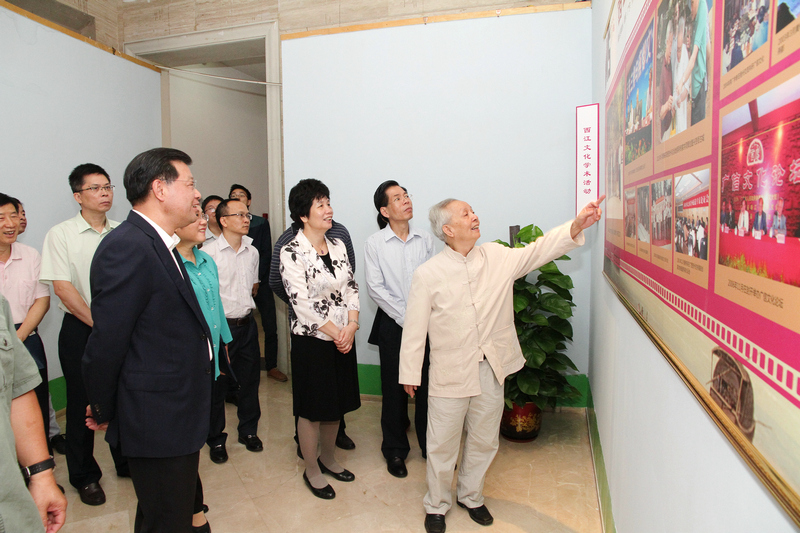 林雄一行参观在广东科学馆展出的广东省珠江文化研究会成立15周年学术成果汇报展(张炜哲 摄)