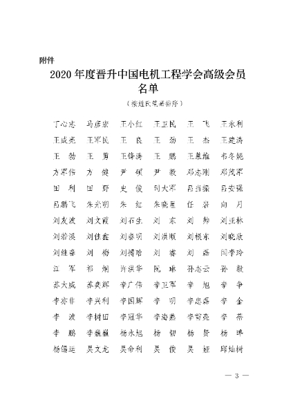 中国电机工程学会高级会员主要授予在电机工程科学技术领域中工作成绩显著,学术上有一定造诣的会员,每年评选一次。2020年度晋升中国电机工程学会高级会员名单如下: