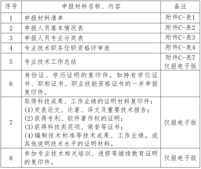 以上职评申报材料均按照本通知附件C的格式及填表要求申报。(无注明“仅报电子版”的均要提交电子版和纸质版)