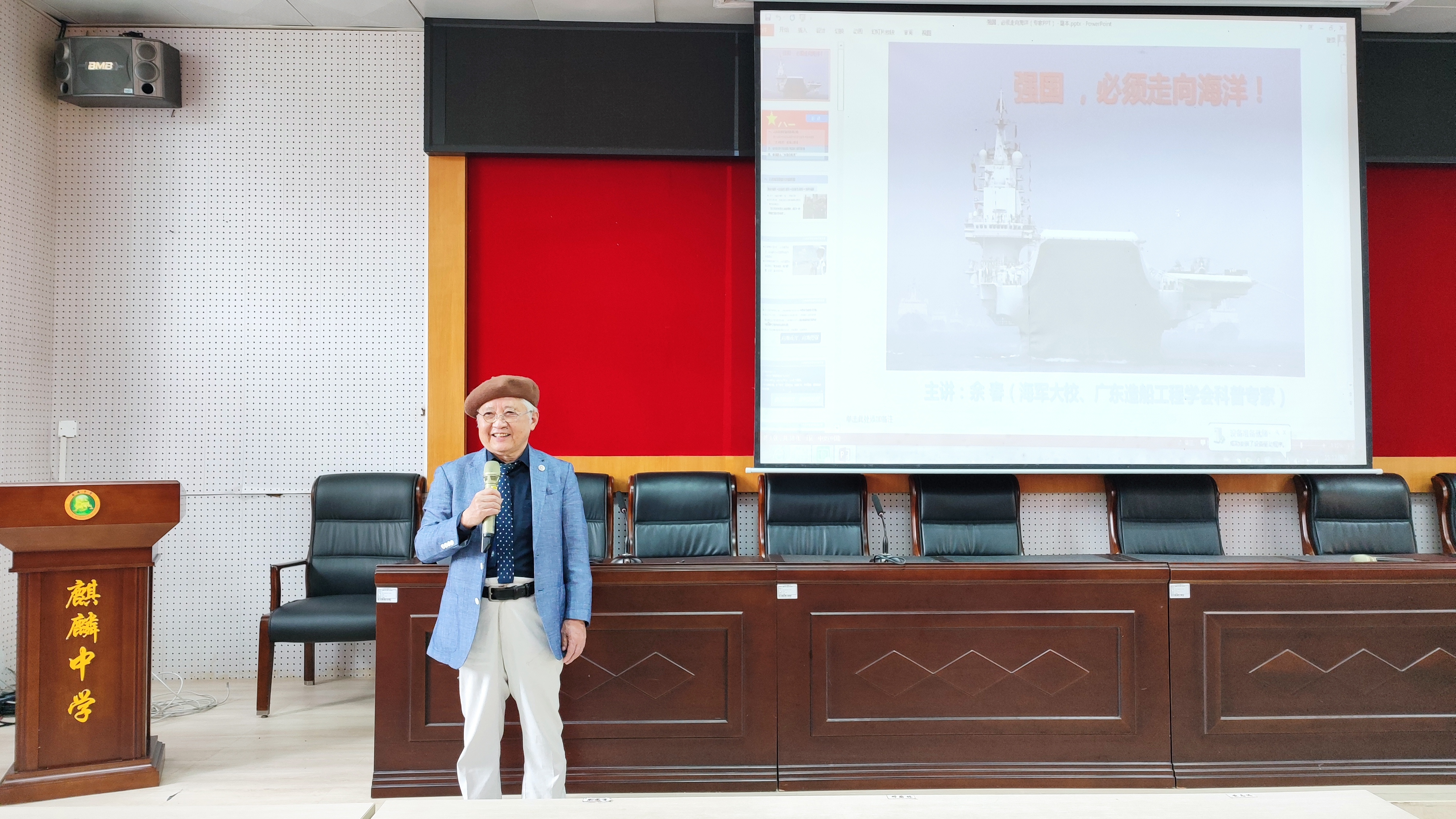科普讲座由麒麟中学初二1班的饶景云同学主持。黄志远校长在作欢迎词中,带领同学们回顾了哥伦布开辟新航路使人类进入“大洋时代”和“海权”的来历等历史知识。