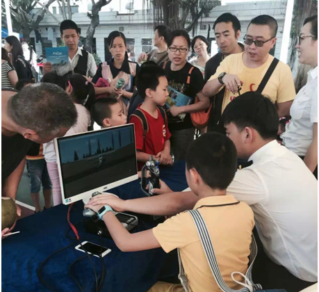除了欣赏高水平的专业赛事,现场还特设了展览区,向观众介绍中国航空航天知识,帮助观众更加直观地了解中国航空航天发展历程和成就。同时,丰富的互动节目吸引了广大市民和少年儿童的注意力。在今年新设的航空课堂上,通用航空公司特意邀请了多位民航机长为家长和孩子们现场讲解航空知识,让家长和孩子们配合完成亲子任务并体验模拟飞行的乐趣;在无人机体验区,多轴飞行器让大家现场感受操作无人机的快乐;在手工区,孩子们在志愿者的指导下现场进行航模制作;在绘画区,数十名孩子用画笔共同描绘“我的飞行梦”;在折纸飞机比赛区,孩子们放飞自己的梦想。大家在现场拍照后,通过微信留下自己对中国航空航天事业的祝福和鼓励,并且在现场打印制作照片留念。